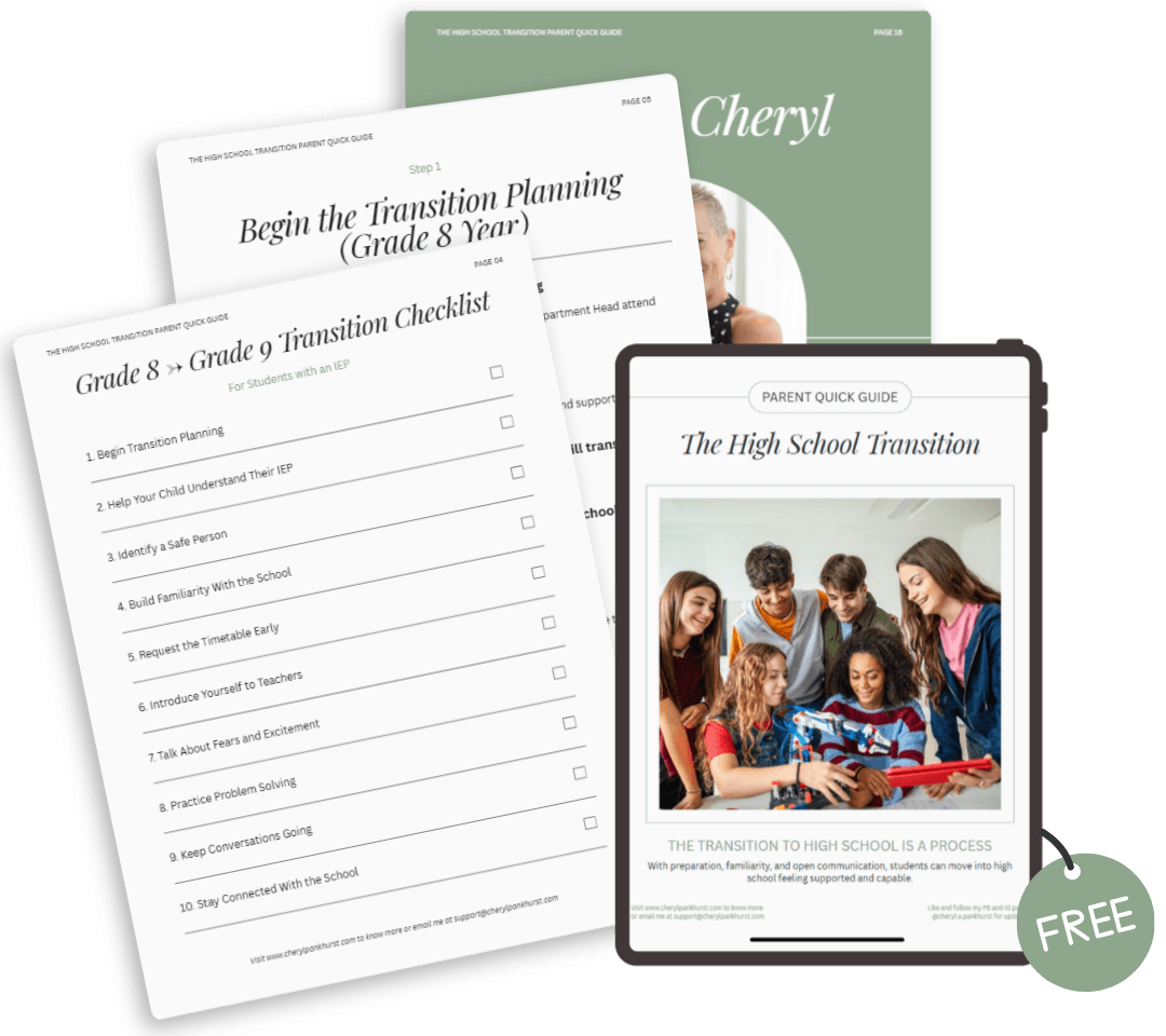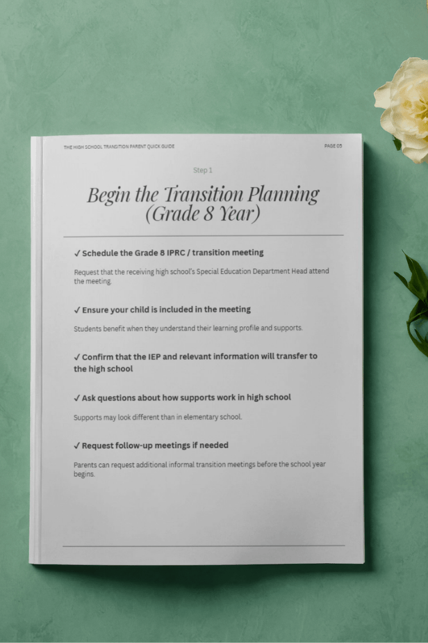 Get the free step-by-step guide built specifically for parents navigating the Grade 8 to Grade 9 transition with an IEP in hand and a lot of unanswered questions.